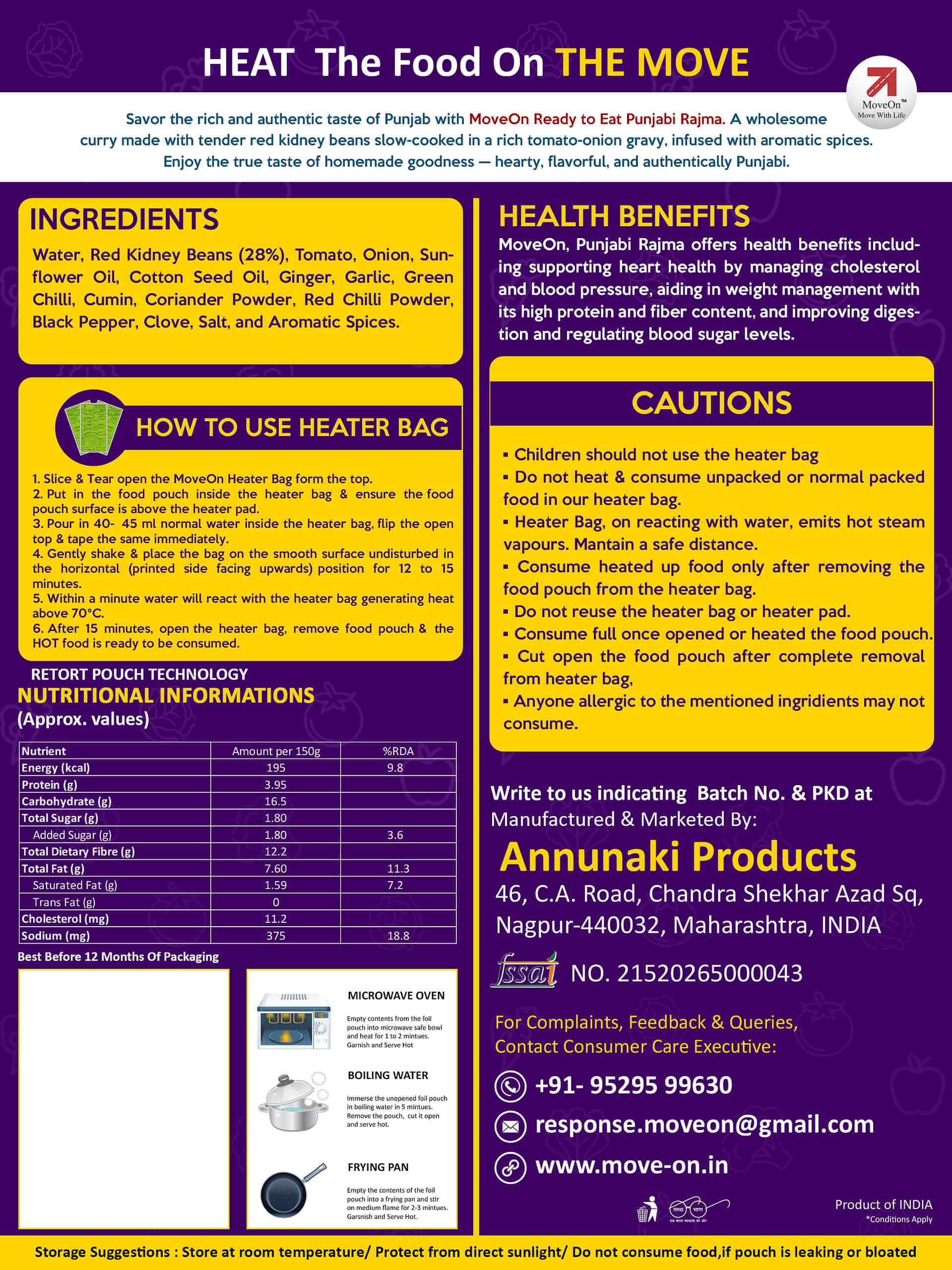 Introducing MoveOn’s Ready-to-Eat Punjabi Rajma With Self Heating Bag, a flavorful and comforting dish that brings the authentic taste of Punjab to your table in just 15 minutes.